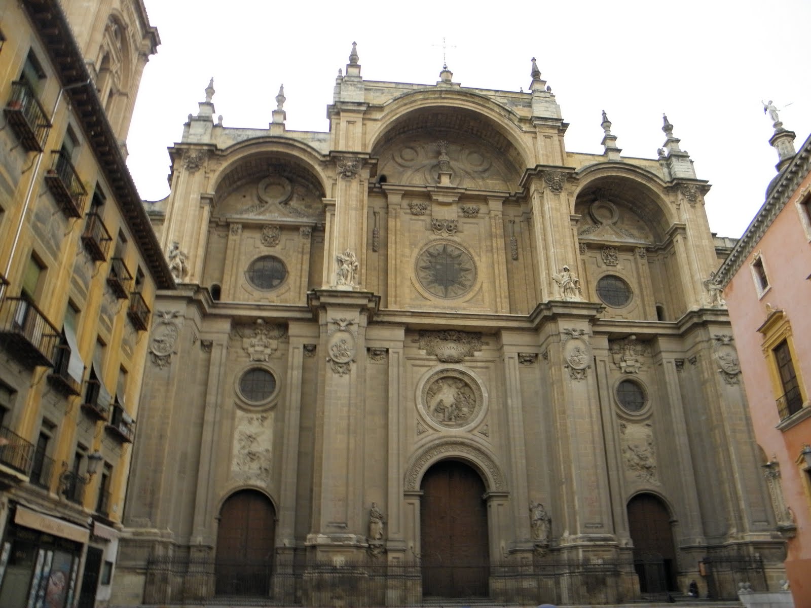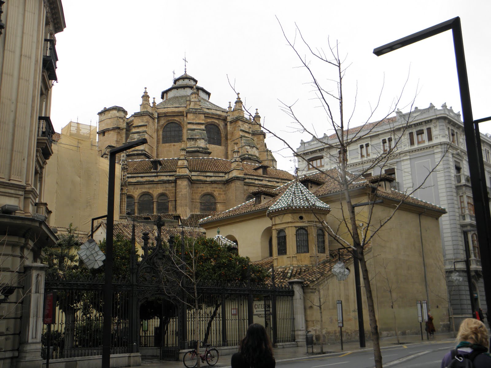 When Isabella and Ferdinand took over, they tore down one of the main mosques and built a massive cathedral. Everything is personalized for the king and queen. Their initials can be seen on the pews and the columns and on adornmants outside the cathedral. The Cathedral has a very different design than most Catholic cathedrals. The building is shaped like a cross. The top of the cross, or the head, is a large circular shaped area that contains the alter on the inside. A large pathway goes around and is separated from the alter by a series of arches. The center line of the cross makes up the congregational area. This was very innovative for its time because usually there was a separation for the nobles and the lower classes. There would be a wall dividing them so the lower classes were unable to see the alter. This cathedral has no separation so all were able to see. Along the sides are a series of small chapel areas that noble families could buy. They then filled them with expensive and ornate religious objects for all to see. They were able to bury their dead in these chapels and mostly show off their wealth.