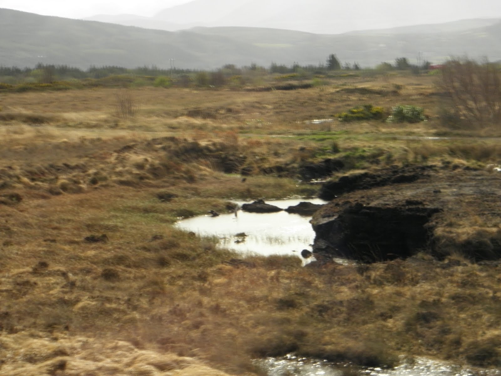 The tour also showed us quite a bit of bogland. Bogs are basically fields of rotting plants. The plants sit and rot for thousands of years eventually becoming this gross, wet, pile of brown plant material and mud and by eventually i mean a really long time. It takes 1,000 years for 1 foot of bog to build up. The bog farmers go out into these fields, cut up chunks of bog, and then lay them out to dry. Drying can take anywhere from three weeks to three months. The peat (the dried bog material) is then used as fuel to heat homes and cook food as well as insulation for roofs and walls. The wet peat is very heavy so horses are used to transport the material, however regular horses are too heavy to walk across boglands, as the guide put it, they would sink and have only their heads sticking up, so very small horses are used.